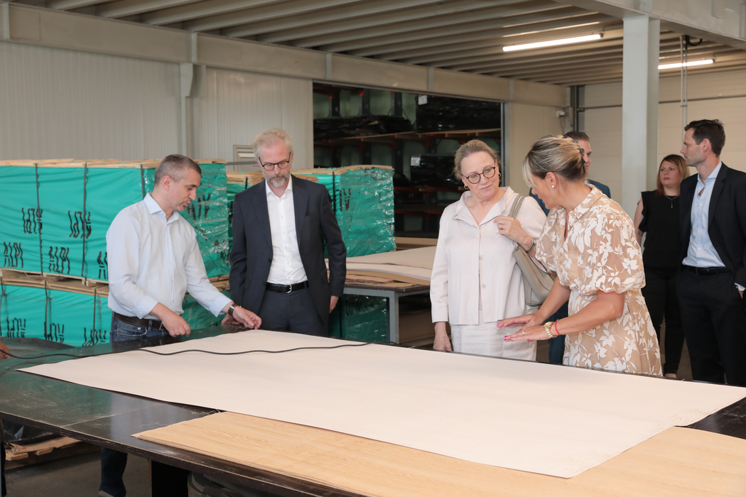 Generalna direktorka JAF-a u Srbiji Melanija Pavlović predvodila je obilazak kompanije, gde je delegacija mogla da vidi širok spektar furnira, kao i usluge obrade furnira. Skladišni prostor koji se prostire u dve hale, zajedno sa uslužno-obradnim centrom koji broji dva raskajača, kantericu i CNC mašinu. Za sam kraj smo se okupili u našem izložbenom prostoru koji je nedavno renoviran, nakon čega je usledio koktel u dvorištu kompanije sa našim najvećim saradnicima i kupcima.