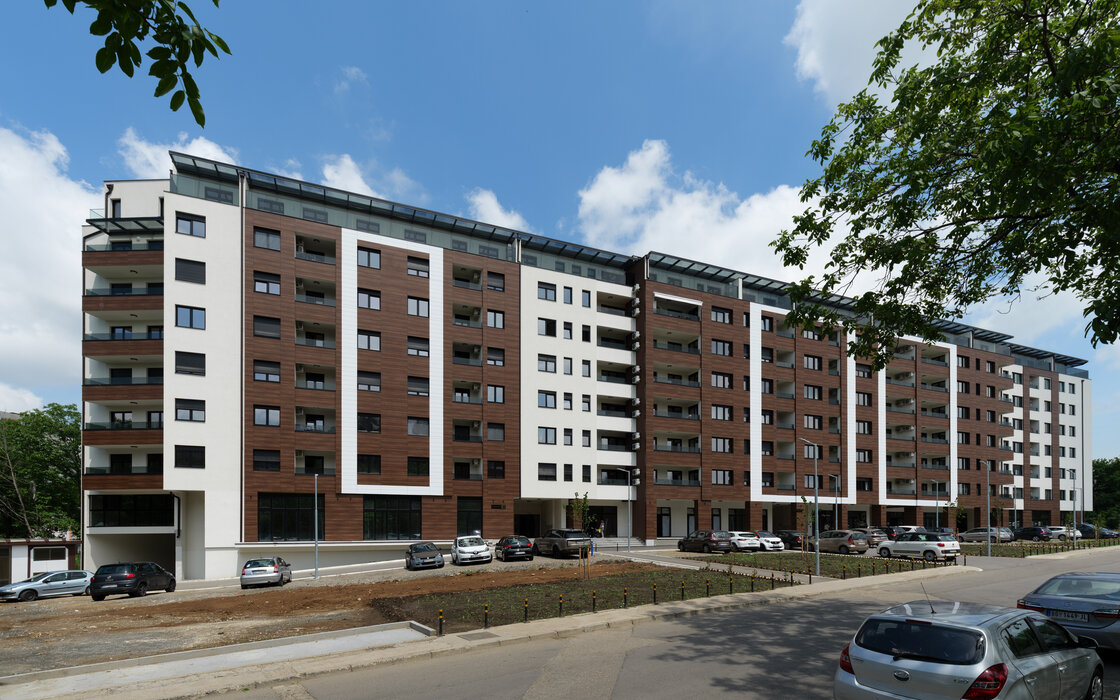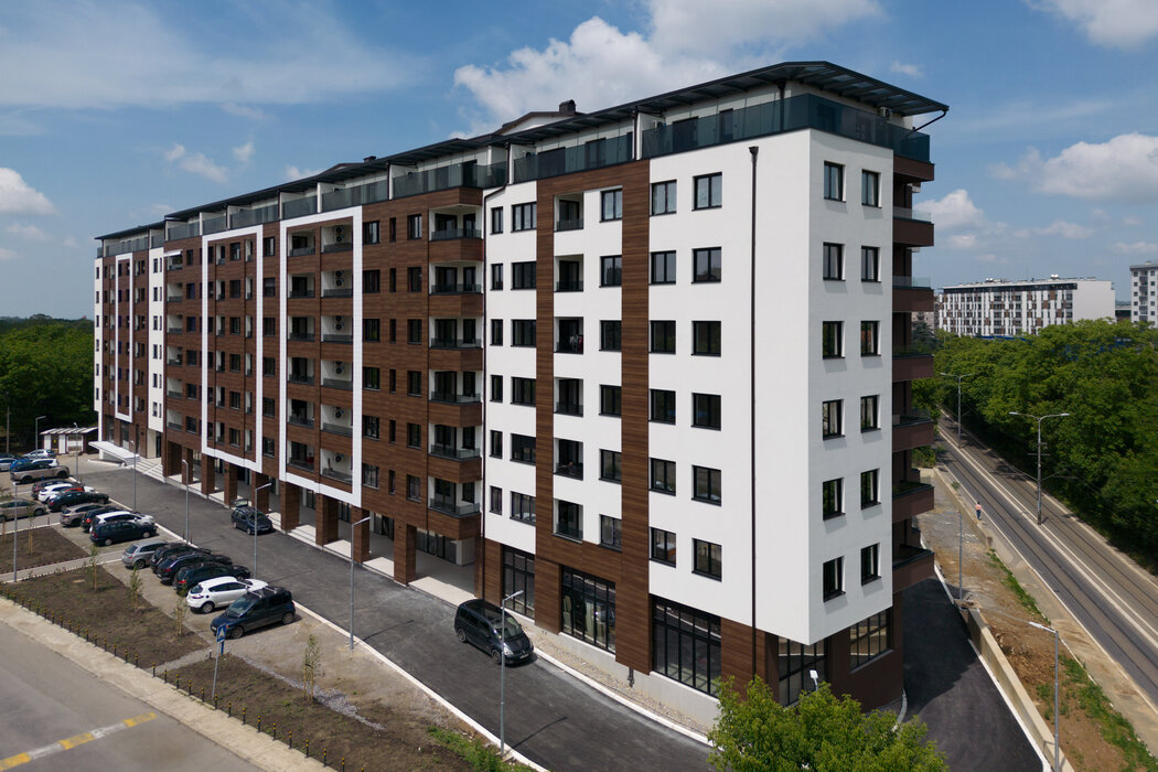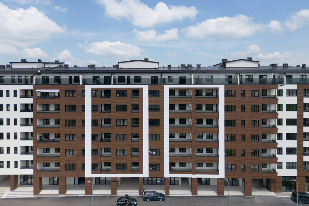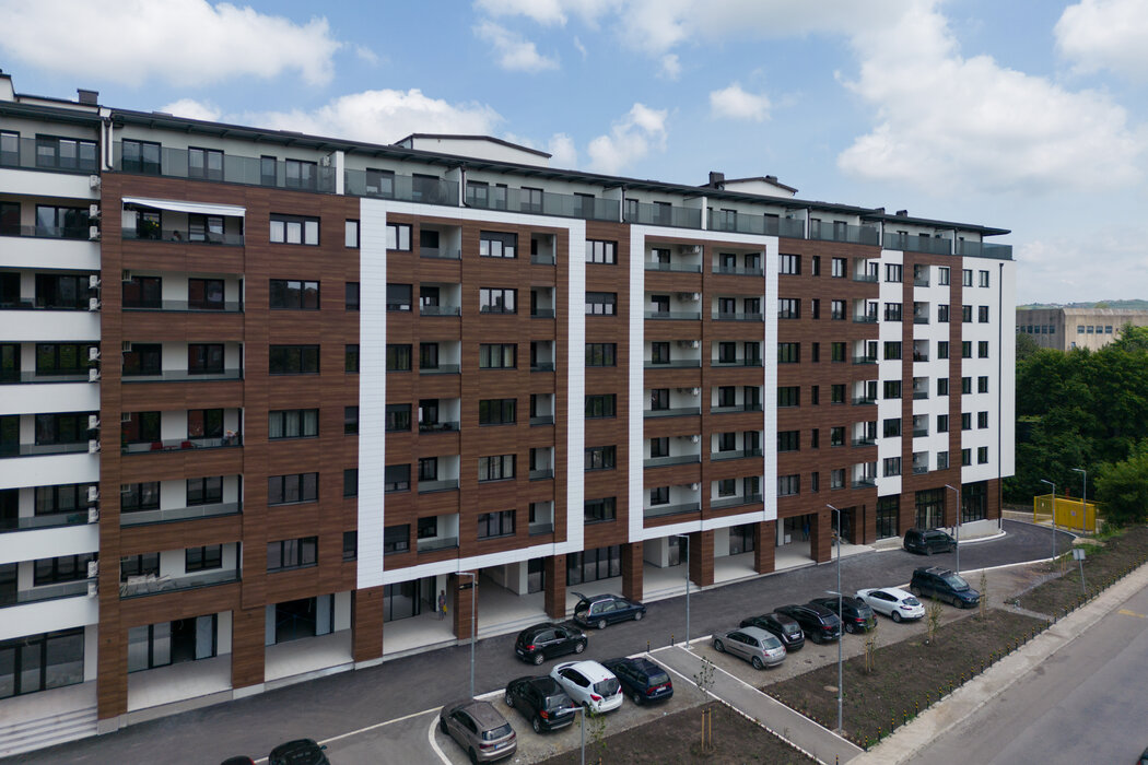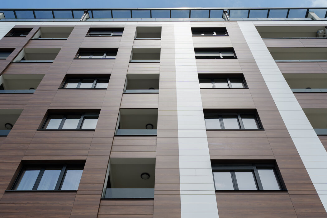U moru zgrada koje su urađenje klasičnim fasadnim materijalima, ventilisane fasade od kompakta u drvo dekoru se posebno izdvajaju. U gradu u kome sivilo betona preovlađuje, ublaženo je materijalom sa izgledom drveta, što se savršeno uklopilo sa okolnim ulicama koje upotpunjuju celokupnu sliku svojim bogatim drvoredima. Izbor je pao na dekor oraha u kombinaciji sa belim eksterijerskim kompaktom iz naše ponude.